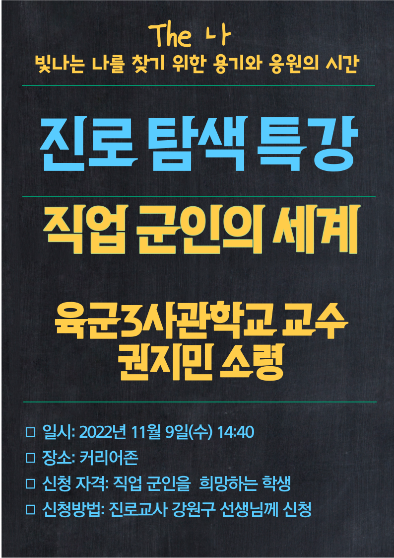 빛나는 나를 찾기 위한 용기와 응원의 시간 'THE 나' 진로 탐색 특강