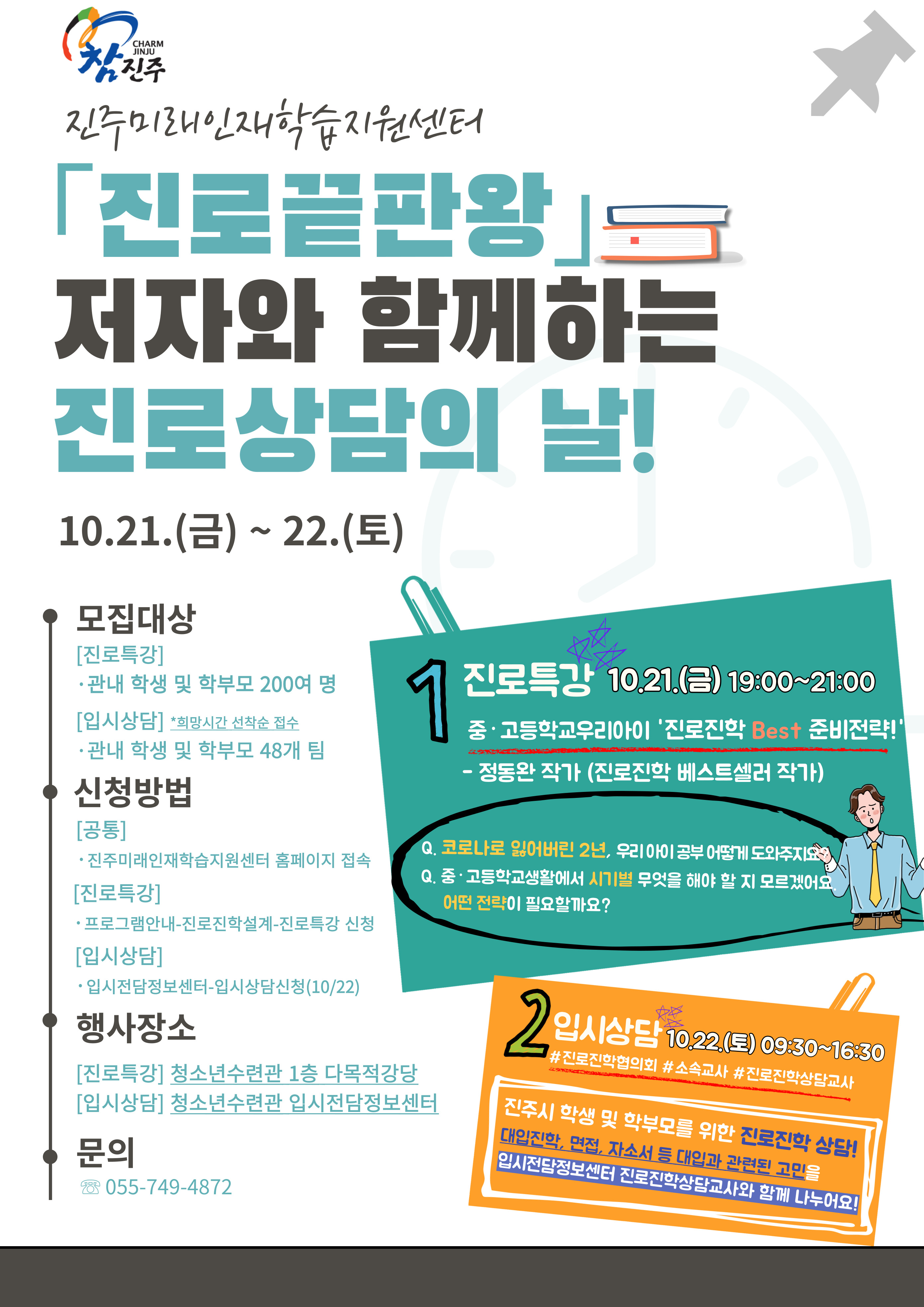 진주미래인재학습지원센터 '진로끝판왕' 저자와 함께하는 진로상담의 날 안내