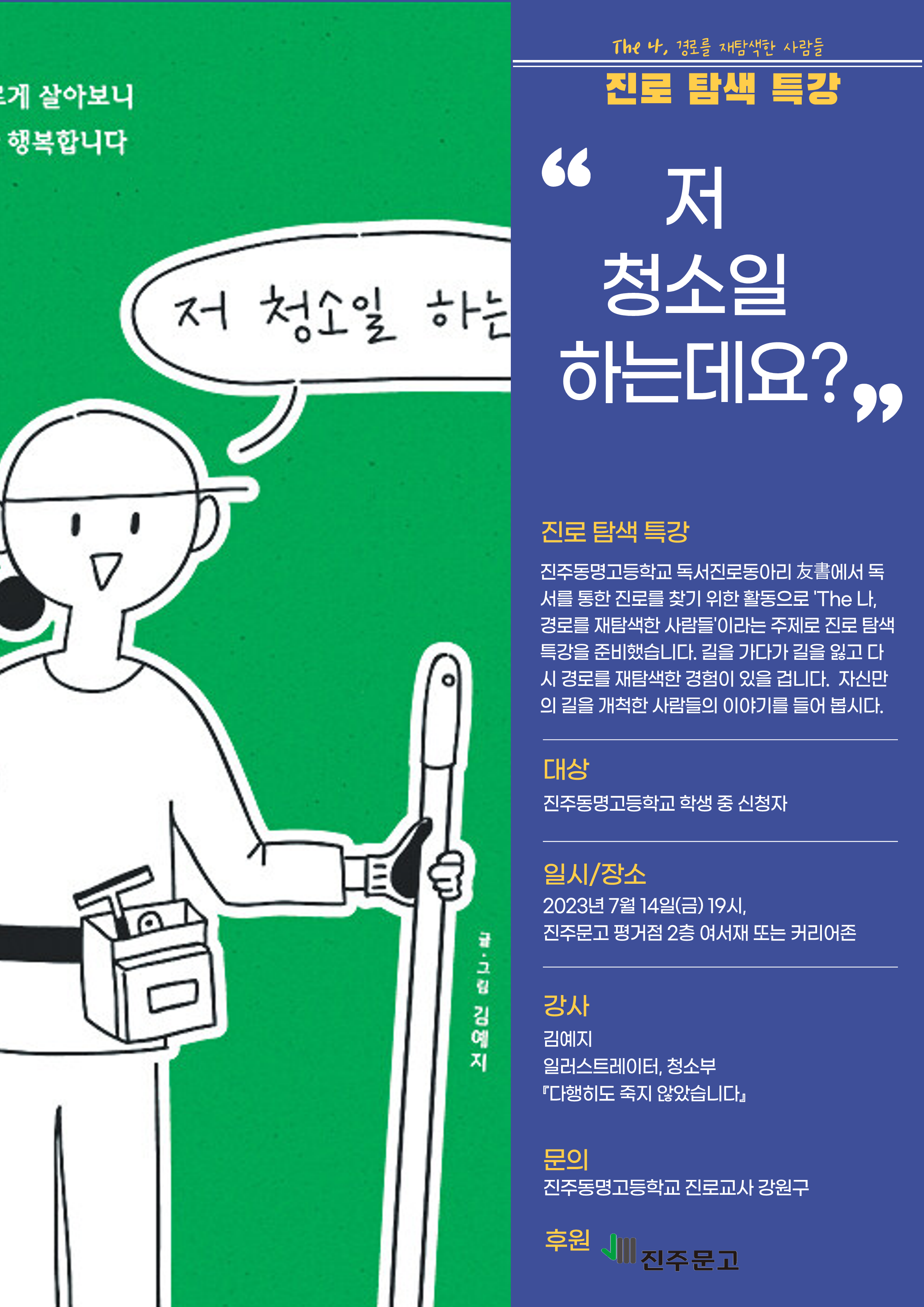 새로운 도전을 한 멋진 청춘의 삶이 있습니다. 우리 진주동명고 학생들에게 꼭 듣게 하고 싶은 강연입니다. 많은 신청 바랍니다.
