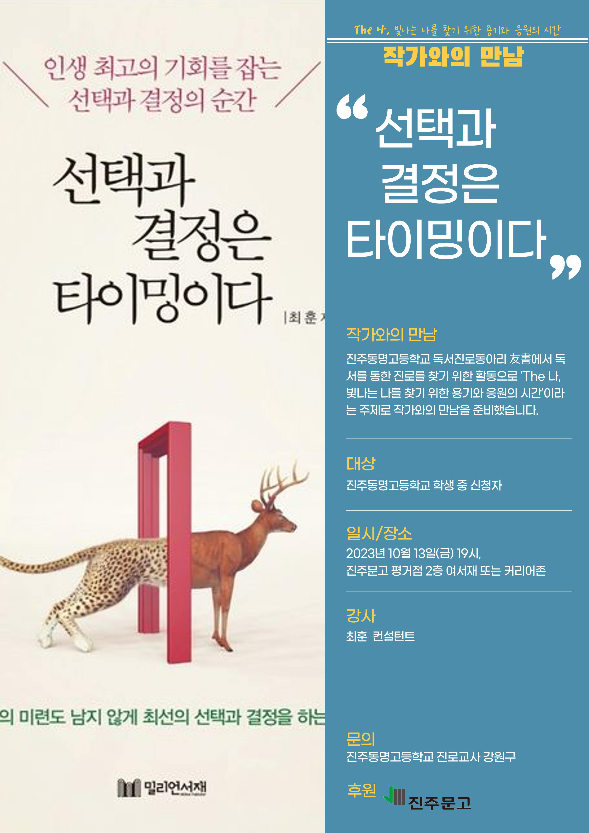 2023_ 작가와의 만남 4탄 '선택과 결정은 타이밍이다'(최훈) 신청을 받습니다.